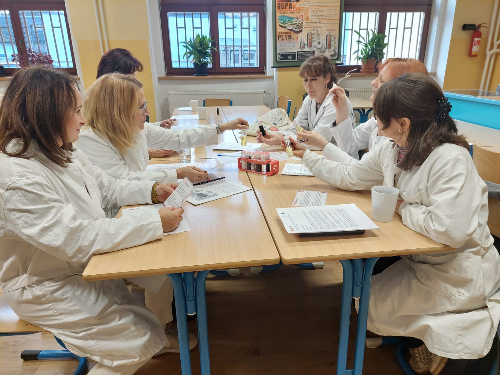 19.11. 2025 se uskutečnilo další setkání Chemického centra v Ledči nad Sázavou. Tentokrát naše pokusy byly z oblasti biochemie s přesahem do biologie. Nejprve jsme určili krevní skupiny pomocí připravených vzorků (byla použita umělá krev). Dalším objektem našeho zkoumání byla moč (také umělá). Zde jsme pomocí diagnostických proužků určili látky...
